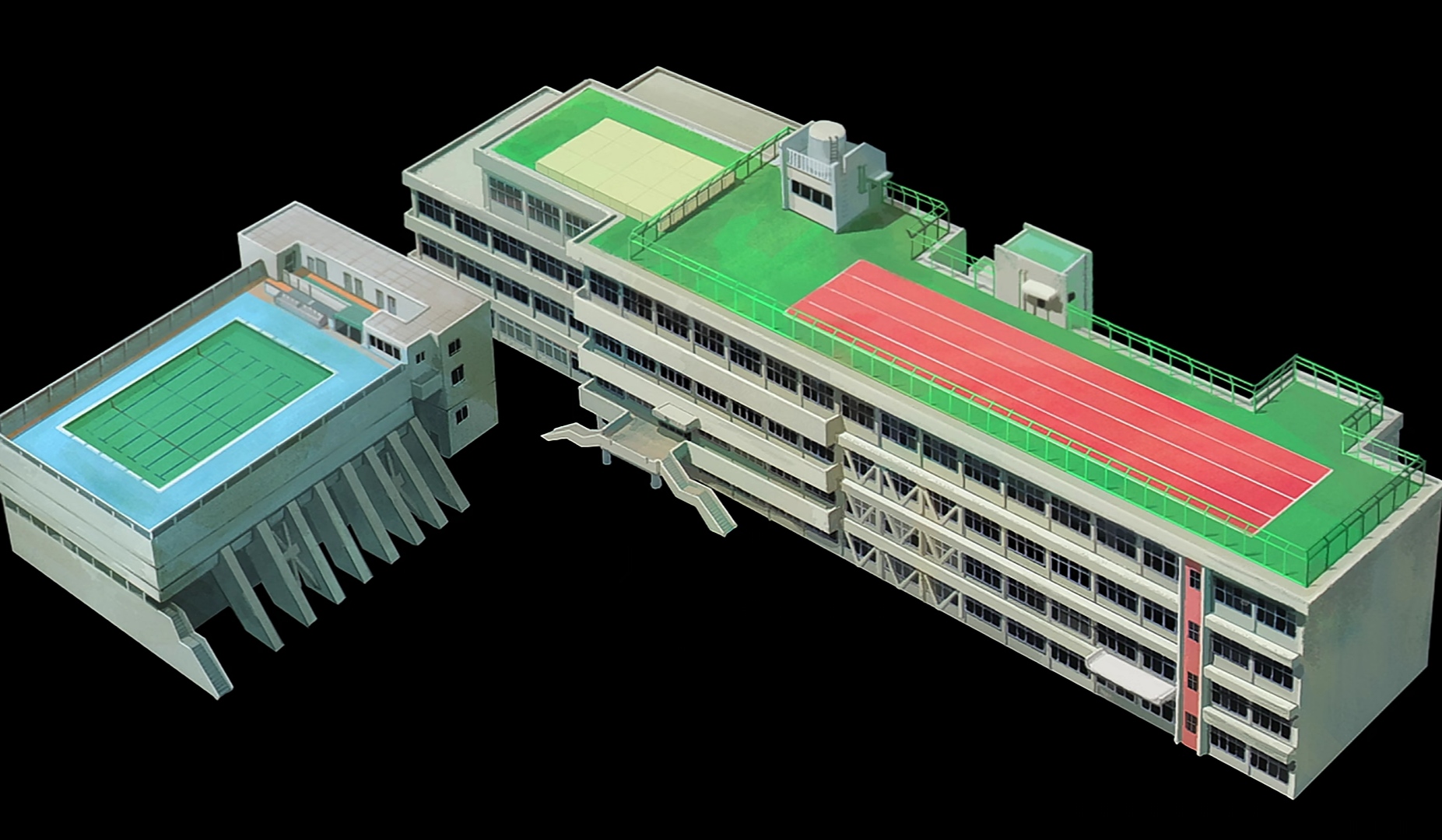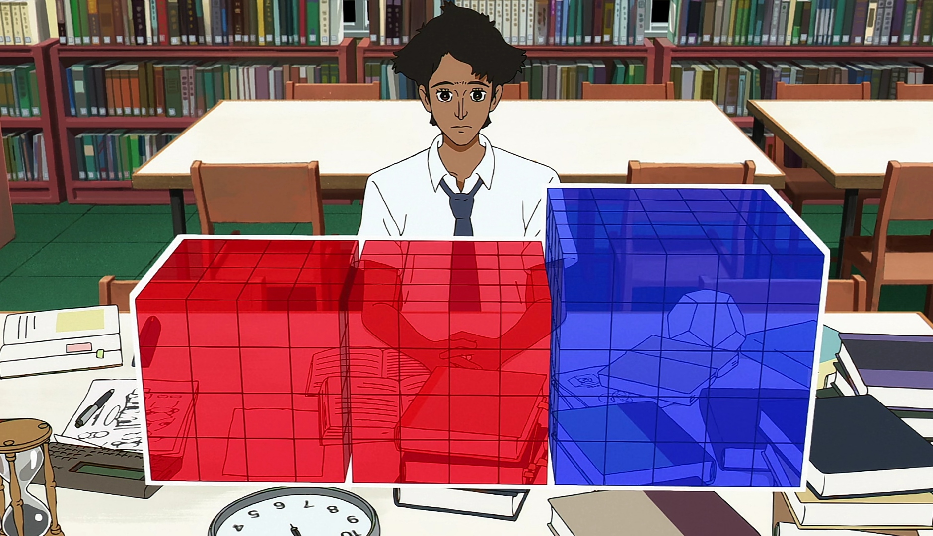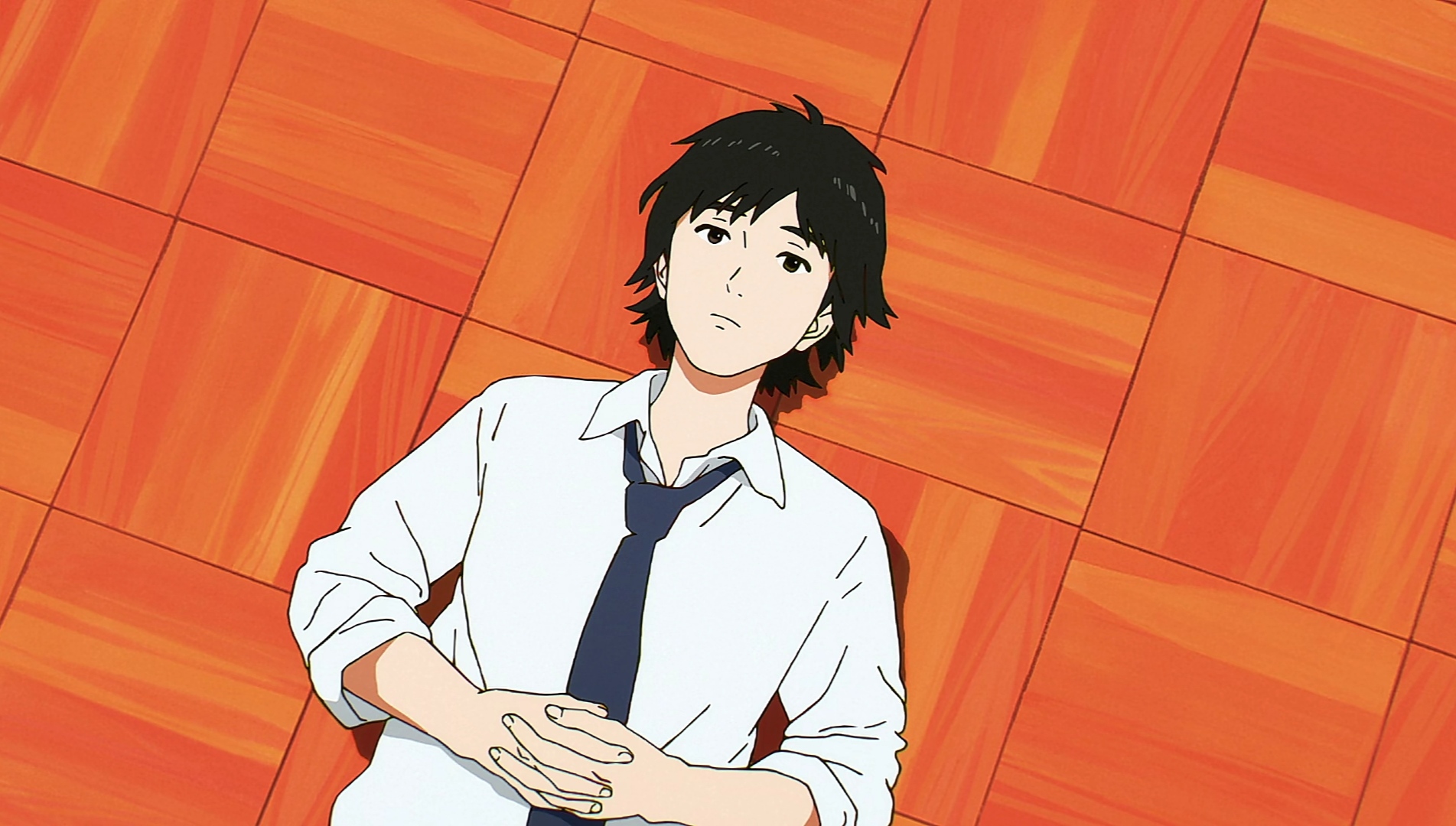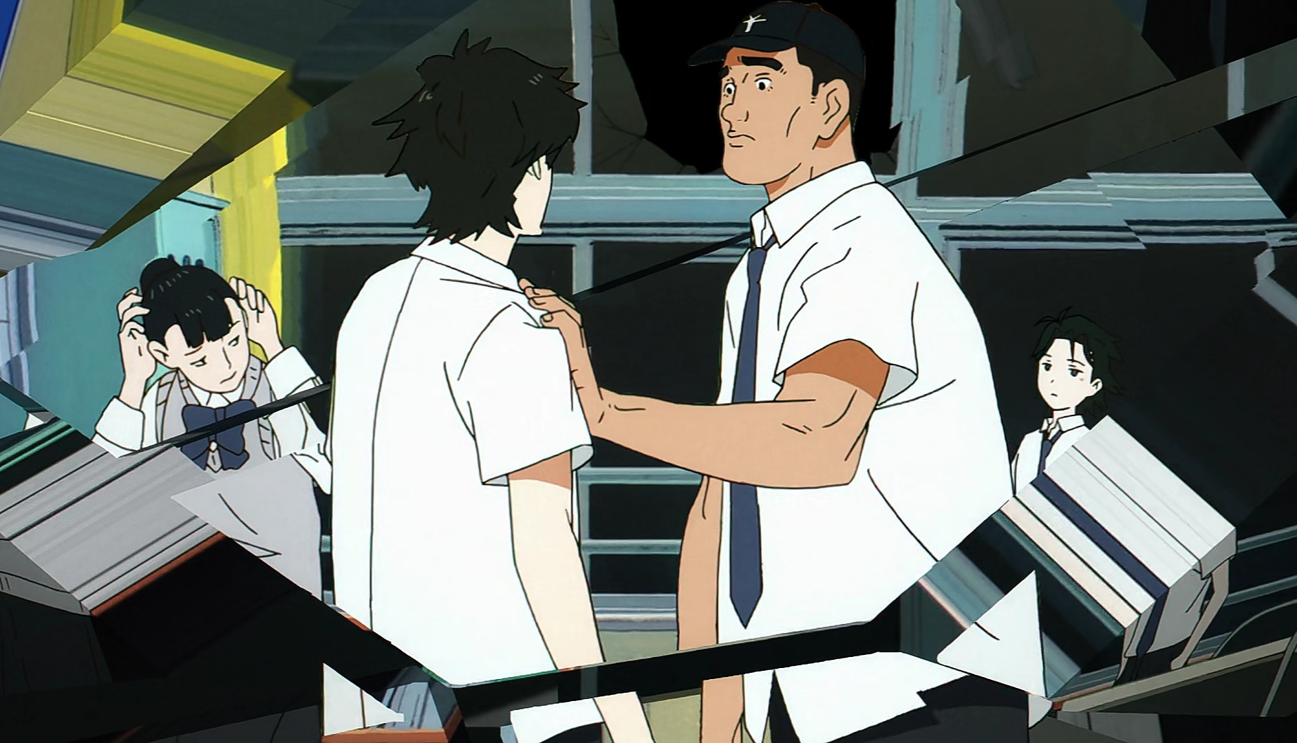 ANIMATION : The animation is quite striking. The low amount of details and the watercolour like palette sets this anime apart from its peers, but it works well with the story. The animation has interesting perspectives and angles that complement the setting, though most of the episode takes place inside the school. It has Neon Genesis kinda vibes, which is GOOD imo.