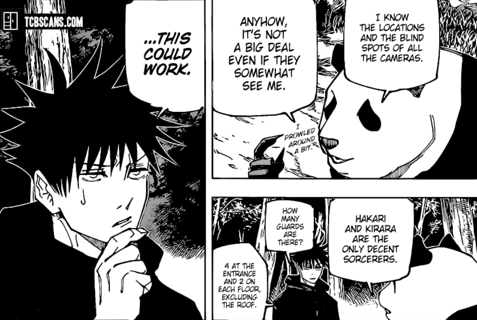 Overall, this chapter was a 9/10. Megumi’s new technique is insanely useful in combat and Panda was the STAR of this chapter.
