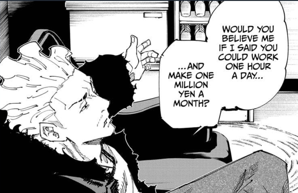 In chapter 154 we saw Yuji getting guided to Hakari’s room. Panda and Megumi decide to go look for Hakari together but were stopped by Kirara. Yuji was offered 1 Million Yen to do a job for Hakari.